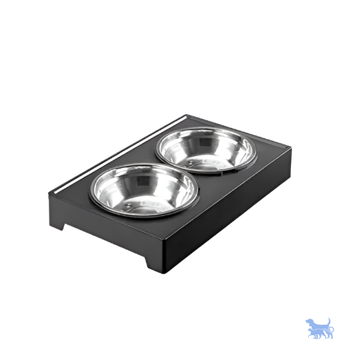Doppia Praticità: Due ciotole in acciaio inox di alta qualità per acqua e cibo, tutto in un unico supporto elegante.
