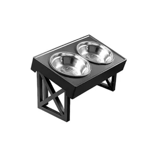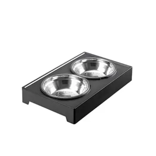 Il design garantisce massima stabilità e sicurezza. La base è dotata di piedini antiscivolo che impediscono alla ciotola di muoversi o ribaltarsi durante il pasto. La configurazione doppia permette di servire cibo e acqua in un unico punto. Le ciotole in inox sono facilmente estraibili dalla struttura in plastica, rendendo il riempimento e la pulizia quotidiana estremamente semplici.