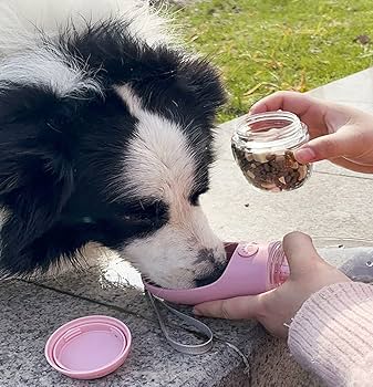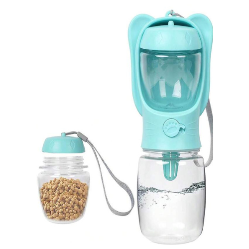 Questo non è solo un semplice portabottiglie. È la stazione di ristoro completa per ogni avventura! La parte superiore contiene l'acqua, mentre il contenitore staccabile inferiore può essere riempito con i suoi snack o crocchette preferite. Inoltre, la forma stessa del tappo funge da ciotola, eliminando la necessità di portare accessori extra